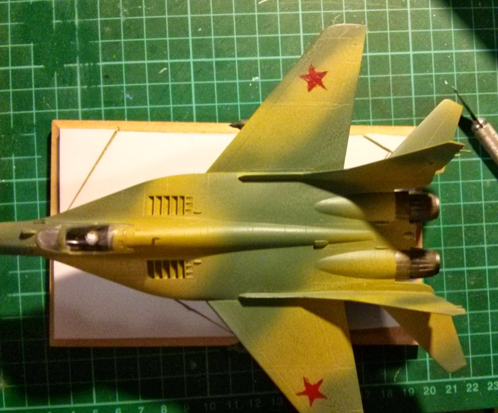 Kun koneen itsensä maalikuvio oli mielestäni aikalailla siinä, jäljelle jäi tuo kauan odotellut paukkurautapuoli. Googlettelin vempainten kuvia ihan esimerkkejä etsiäkseni.- R-60 -ohjukset saivat morsiomaisen valkoisen pinnan punaisilla kärjillä.